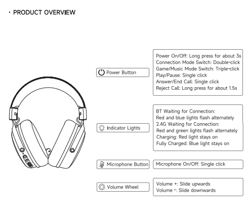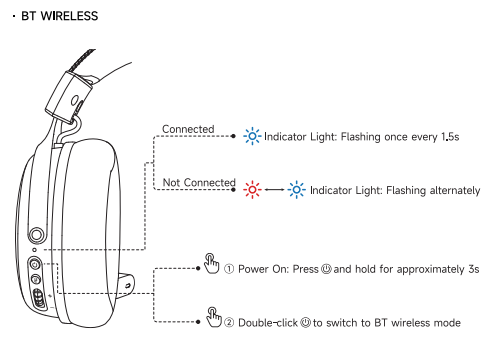 • Nhấn giữ nút nguồn 3 giây để bật tai nghe