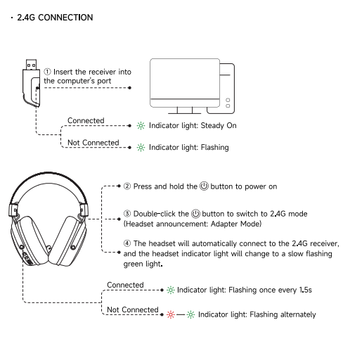 • Khi dùng dây → không sử dụng Bluetooth hoặc 2.4G