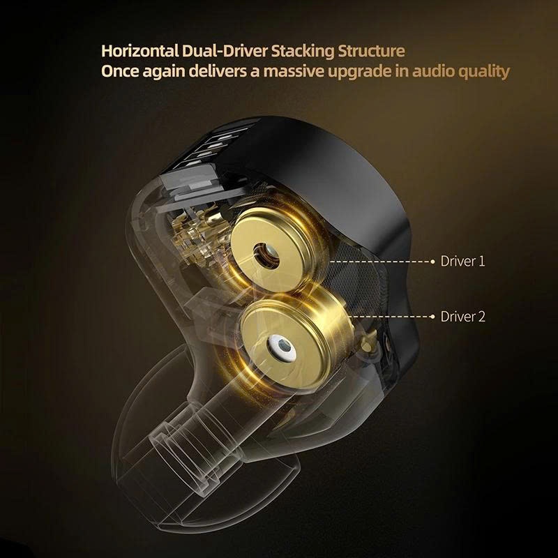 Driver Dynamic Kép Xếp Ngang: Hai màng loa dynamic được bố trí song song theo chiều ngang, giúp tăng độ chi tiết và mở rộng dải âm, mang lại âm thanh mạnh mẽ, tự nhiên hơn so với driver đơn truyền thống.