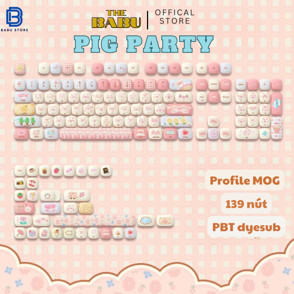 AKKO Keycap set – Piggy Party Cute (Tương Thích với 60%, 64-key, 65%, TKL, 75%, 96%, 1800 compact, and full-size)