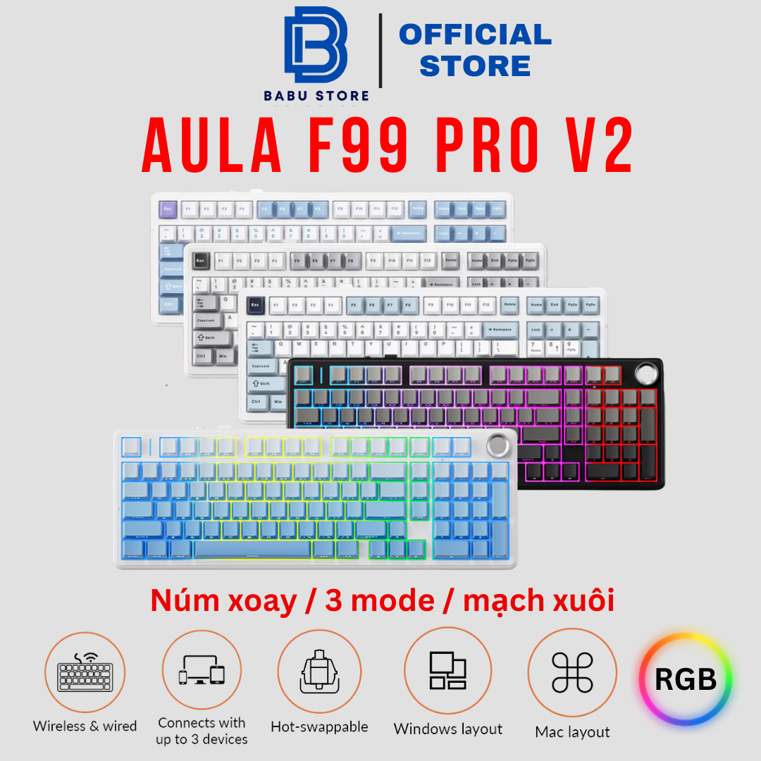 - Số lượng phím: 99 phím - Chất liệu keycap: Nhựa PBT