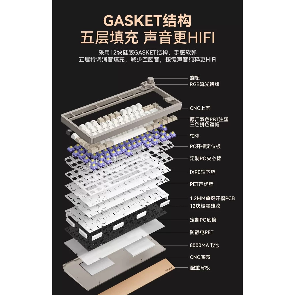 Foam: (5-layer filled sound pack) Poron Silencer Cotton + 8 times Foamed lXPE under-switch Pad + Pet Voice Optimizing Pad