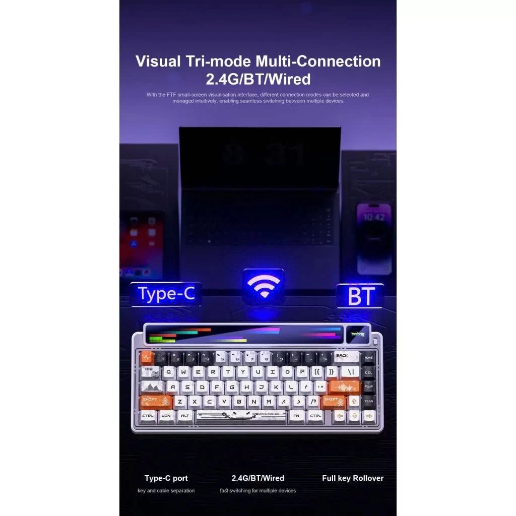 - Kết nối 3 chế độ: Hỗ trợ USB-C, Bluetooth và 2.4GHz, dễ dàng chuyển đổi giữa các thiết bị.