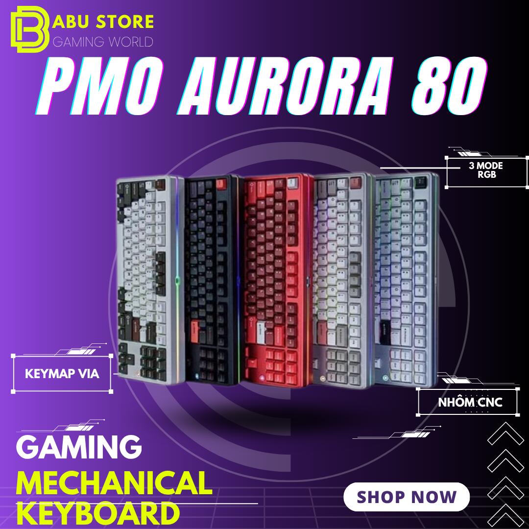 Bàn phím cơ PMO Aurora 80 – Nhôm CNC, 3 Chế Độ, Gasket Mount, Hotswap, RGB | The BABU Store