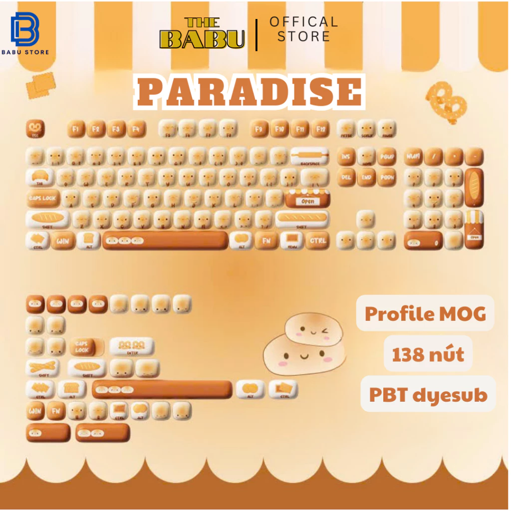 Bộ keycap này được làm từ chất liệu PBT Dye-Subbed, mang đến độ bền vượt trội và khả năng chống phai màu theo thời gian. Công nghệ in bề mặt tiên tiến đảm bảo rằng các chi tiết in sắc nét và bền bỉ, giống như cách mà mỗi chiếc bánh bao giữ lại hình dáng hoàn hảo của nó sau khi hấp. Không chỉ đơn thuần là bộ phím, keycap Bánh Bao còn là sự kết hợp giữa nghệ thuật và công năng, mang đến niềm vui và năng lượng tích cực cho người dùng mỗi khi sử dụng. Profile MOG Hình Dạng Nấm