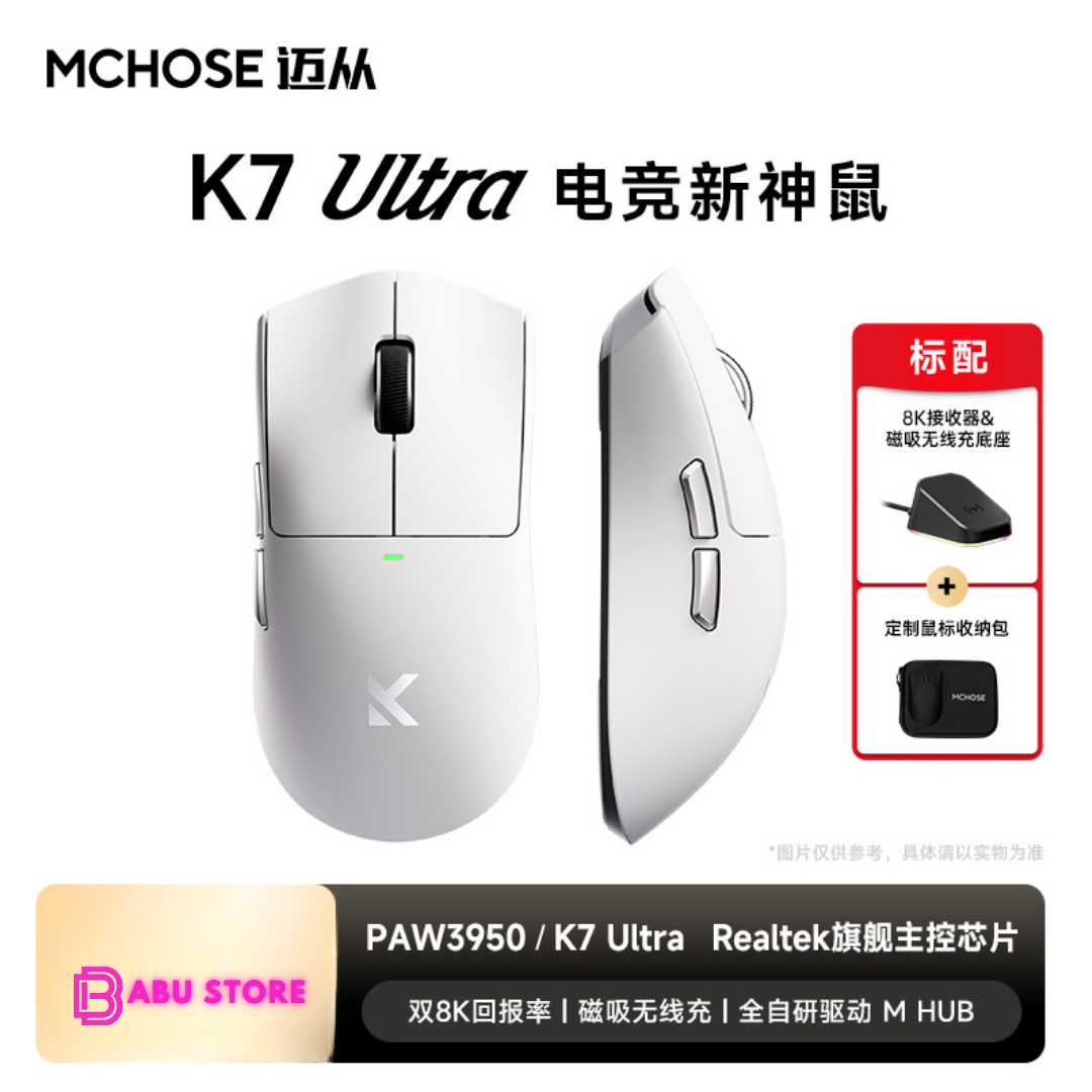 Tóm lại, Mchose K7 Ultra là lựa chọn đáng giá cho game thủ hoặc người dùng công nghệ cao, khi kết hợp giữa hiệu năng đầu bảng (sensor PAW3950, polling 8K, kết nối đa chế độ), thiết kế nhẹ – chắc – mượt, cùng hệ sinh thái phần mềm tiện dụng. Nếu bạn đang tìm kiếm một mẫu chuột wireless cân đối giữa hiệu suất, trọng lượng và giá trị – đây là cái tên không nên bỏ lỡ!