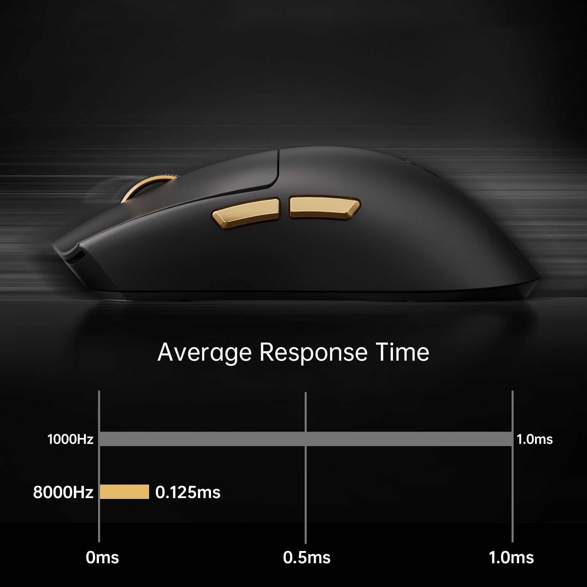 Hỗ trợ ba chế độ kết nối: giao tiếp có dây, không dây 2.4 GHz và Bluetooth, cùng tần số phản hồi lên tới 8.000 Hz ở cả chế độ wired và wireless 2.4 GHz. Điều này giúp giảm độ trễ xuống chỉ còn 0.125 ms – cực kỳ lý tưởng cho game thủ chuyên nghiệp