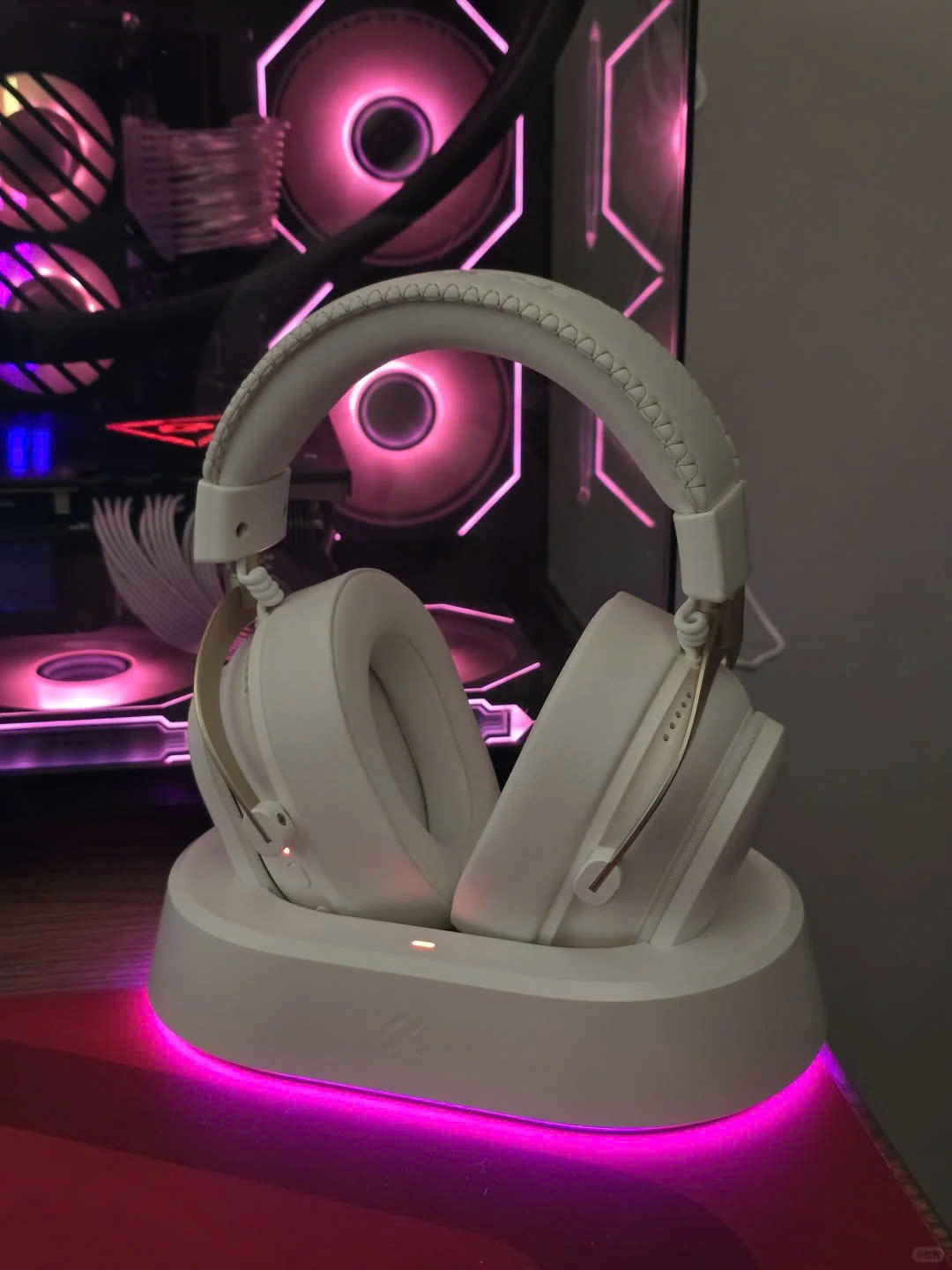 - Đế sạc nam châm RGB, đặt tai nghe là sạc - không cần cắm dây
